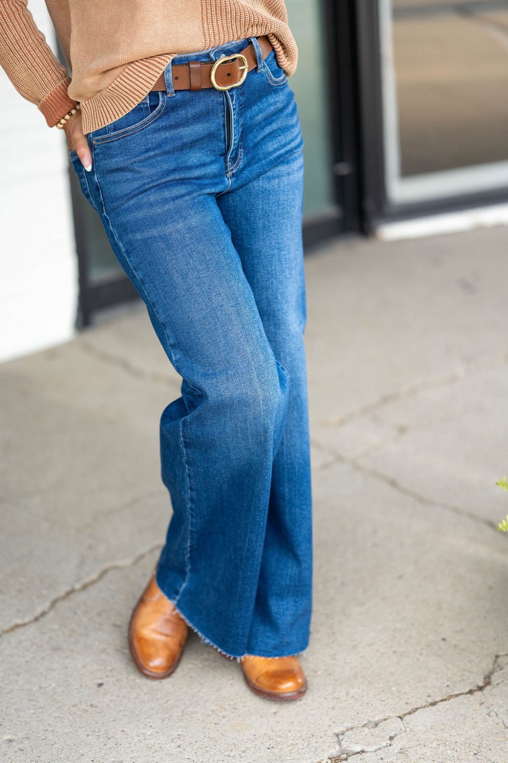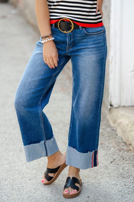 These mid-rise jeans feature a fun cropped wide cuff and the perfect amount of stretch, making them your new go-to’s! Dress these up or down for everyday wear!?