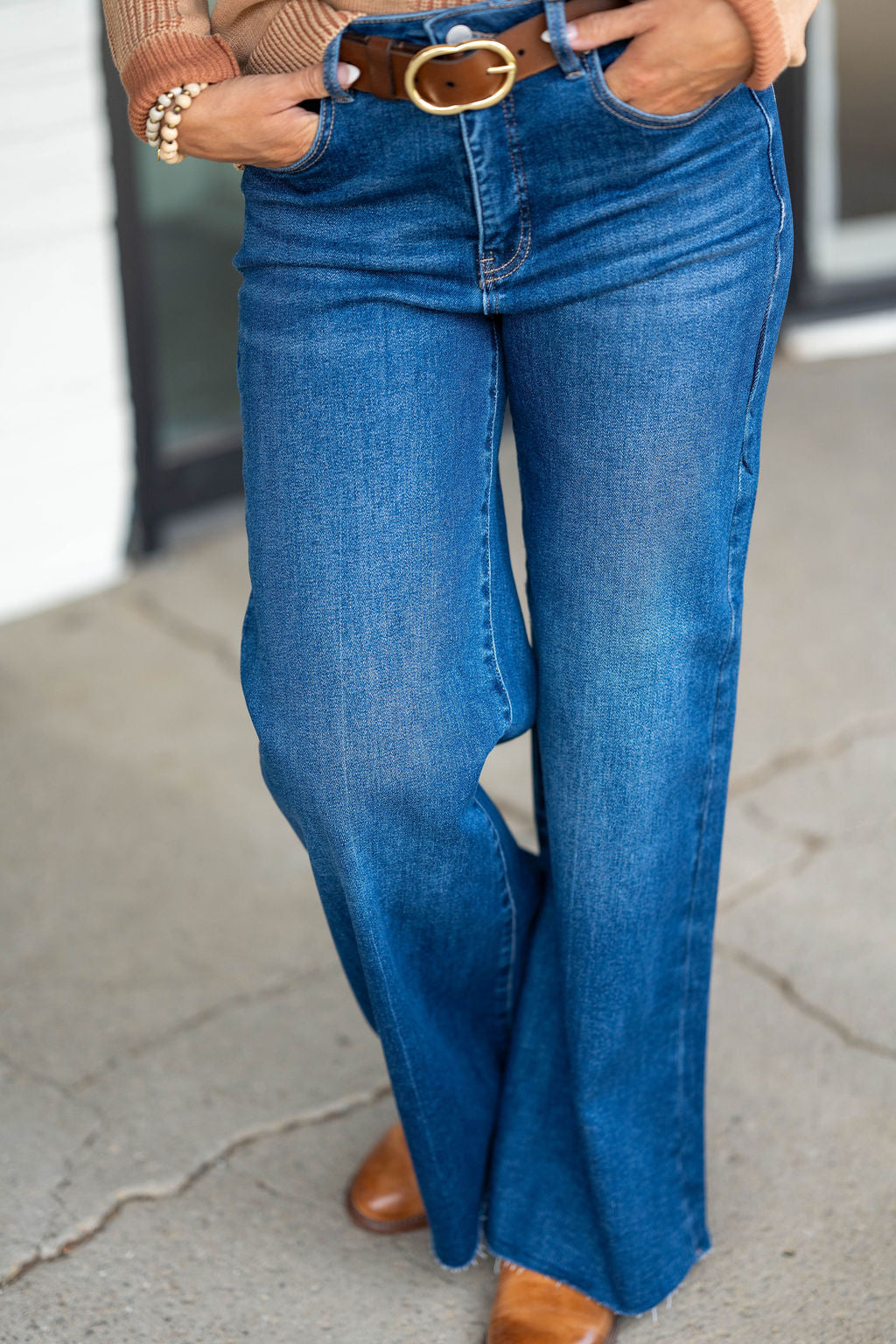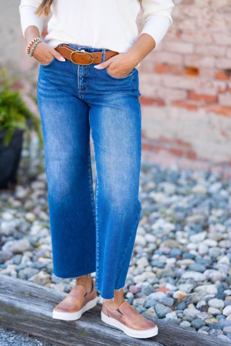 These cropped wide-leg jeans feature an adjustable waistband and the perfect amount of stretch to hug every curve! Dress these up or down with ease for everyday wear!
